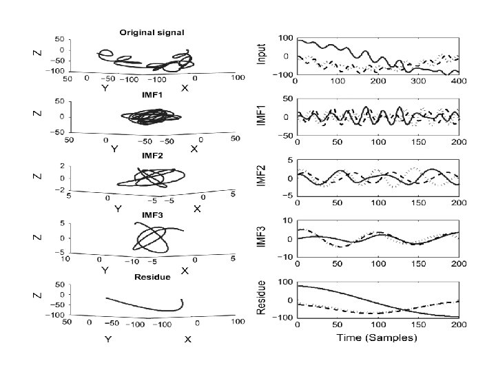 Generalized to n-Dimension • For multivariate signals, the local maxima and minima may not be defined directly. • Moreover, the notion of ‘oscillatory modes’ defining an IMF is rather confusing for multivariate signals. • To deal with these problems, Rehman and Mandic (2009) proposed to generate multiple ndimensional envelopes by taking signal projections along different directions in ndimensional spaces; these are then averaged to obtain the local mean.