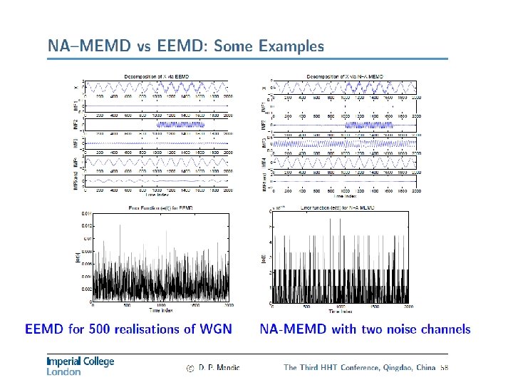 History • Tanaka and Mandic first initiated complex, and Rilling et al bivariate EMD. – Tanaka, T. & Mandic, D. P. 2006 Complex empirical mode decomposition. IEEE Signal Process. Lett. 14, 101– 104. – Rilling, G. , P. Flandrin, P. Gonçalves, and J. M. Lilly, 2007: Bivariate Empirical Mode Decomposition, IEEE SIGNAL PROCESSING LETTERS, VOL. 14, 936 -939. • Mandic extended it to Tri- and Multi-variate. – N. Rehman, D. P. Mandic, 2009: Empirical Mode Decomposition for Trivariate Signals. IEEE TRANSACTIONS ON SIGNAL PROCESSING, VOL. 58, 1059 -1068. – N. Rehman, D. P. Mandic, 2009: Multivariate empirical mode decomposition. Proc. Roy. Soc. Lond. , doi: 10. 1098/rspa. 2009. 0502 N. – Rehman, D. P. Mandic, 2011: Filter Bank Property of Multivariate Empirical Mode Decomposition. IEEE TRANSACTIONS ON SIGNAL PROCESSING, VOL. 59, 2421 -2426.