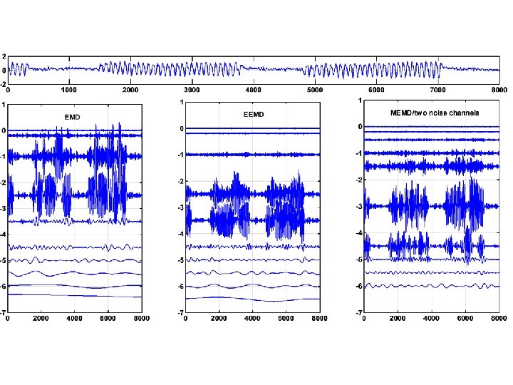 Summary • MVEMD is a very useful and intriguing new development in EMD methodology. • It offers an uniformity (same scale and same number) to the IMF from the multivariate data set so that the results will be easier to interpret. • The NA-MVEMD is a beautiful idea. • The fatal flaw of MVEMD and NA-MVEMD is that the filter is too sharp, which leads to separation of harmonics from the fundamental and destroy the nonlinearity.