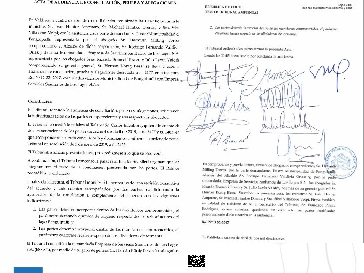 PRINCIPALES PUNTOS DE LA DEMANDA La demanda se sustento en los siguientes puntos: 1. - El requerimiento de la Municipalidad de Panguipulli para eliminación de los aliviaderos de tormenta al lago Panguipulli por parte de la empresa sanitaria ESSAL S. A, producto de las descargas de aguas servidas no autorizadas y por NO contar con la RCA para su realización. 2. - El requerimiento de modernización del sistema de tratamiento de aguas servidas, considerando las redes de alcantarillado, Plantas elevadoras y planta de tratamiento de aguas servidas. 3. - El requerimiento que todas las obras infraestructura nuevas que construya la empresa sanitaria sean sometidas a un Estudio de Impacto ambiental (EIA). Producto de la Demanda se logra la siguiente conciliación en el tercer tribunal ambiental de Valdivia.