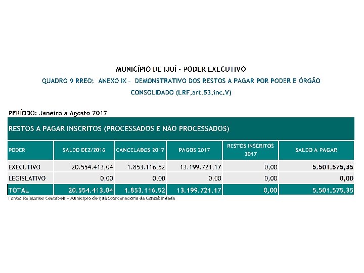 ________________________________________ _ MUNICÍPIO DE IJUÍ – PODER EXECUTIVO 09 | slide SECRETARIA MUNICIPAL DA FAZENDA AUDIÊNCIA PÚBLICA | EXECUÇÃO ORÇAMENTÁRIA E GESTÃO FISCAL | 2° QUADRIMESTRE 2017