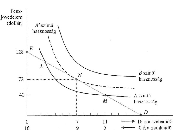 Nem bérből származó jövedelem • A görbe függőlegesen eltolódik, mert nem változott bértétel • A szabadidő nem haladhatja meg a természetes maximumot