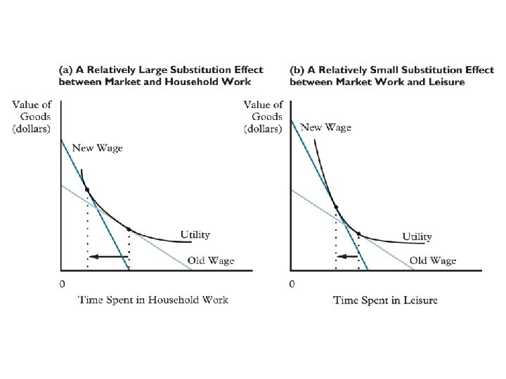 Béremeléssel járó változások • A közömbösségi görbéktől függ, hogy a jövedelemvagy a helyettesítési hatás lesz a meghatározó Domináns a jövedelem-hatás Domináns a helyettesítési-hatás