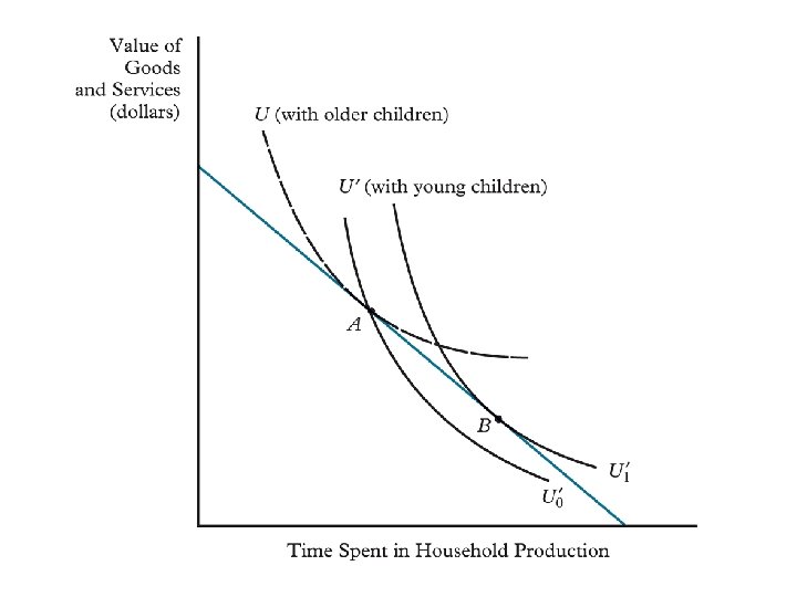 Vásárlás és háztartási termelés Vásárolt javak U 1 U 2 Háztartási termelésre fordított idő Hogyan jelenik meg a jövedelem- és a helyettesítési hatás? (béremelkedés vs. transzfer)