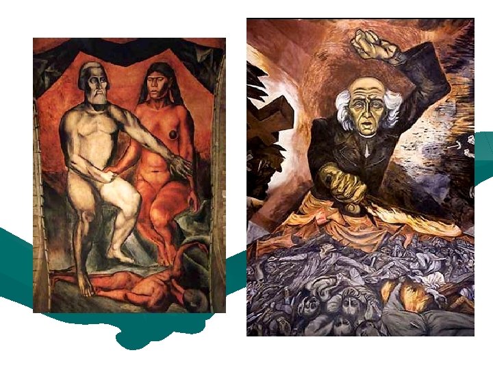 José Clemente Orozco • Es considerado el más crítico ante los hechos sociales, el menos narrativo: “yo pinto ideas, no historias”. • Su pintura se caracteriza por un estilo “dibujístico”, es decir, utiliza las líneas de manera muy expresiva. El uso del color es violento. En cierta época, es notoria la caricaturización de los personajes.