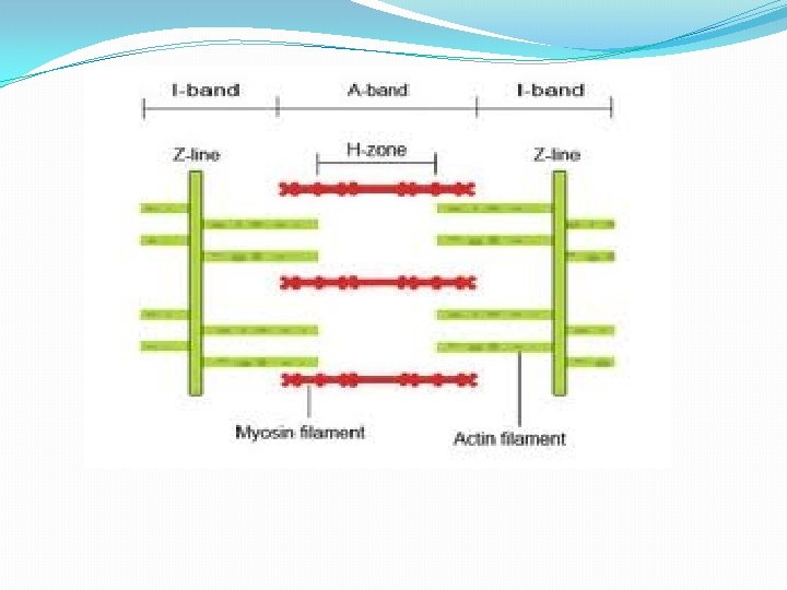 The Microstructure of a Muscle �Muscle fibres contain thread like myofibrils. �Myofibrils consist of repeated units called sarcomeres. �Each sarcomere is divided from the next by Z lines and contains two protein filaments: the thin actin filaments and the thick myosin filaments. �Muscle contraction occurs as the sarcomere shortens due to myosin filaments pulling the actin filaments inwards. �This results in the actin and myosin filaments being drawn closer together and the whole muscle shortening.
