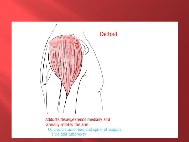 ASSOCIATED TERMS • Tendon cord of fibrous tissue • Belly • Origin Fleshy part of muscle Muscle attachment that remains fixed • Insertion Muscle attachment that moves • Action What joint movement a muscle produces i. e. flexion, extension, abduction, etc.