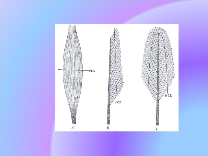 Strength of muscles • Depends upon the number of fibers in the physiological cross-section • Physiological cross-section - which passes through practically all of the fibers • Anatomical cross section – • unipinnate and bipinnate muscles the physiological cross-section may be nearly at right angles to the anatomical cross-section