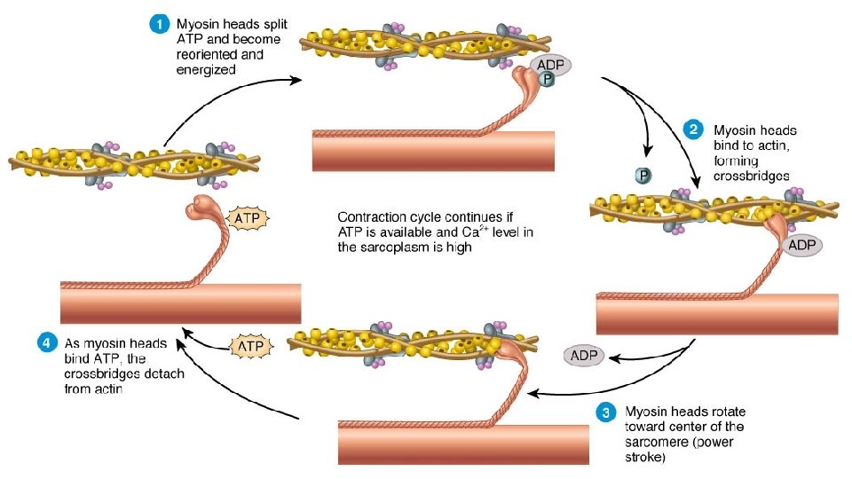 5. As long as Ca++ ions remain in the sarcoplasm to bind to troponin, which keeps the actin-binding sites “unshielded, ” and as long as ATP is available to drive the cross-bridge cycling and the pulling of actin strands by myosin, the muscle fiber will continue to shorten to an anatomical limit. https: //www. youtube. com/ watch? v=U 2 TSaz 8 -y. NQ