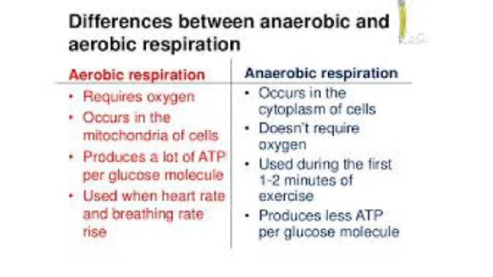 3. Anaerobic respiration (glycolysis) - the breakdown of stored glucose stored as glycogen, to create pyruvic acid and ATP - enough energy for 30 seconds 4. Aerobic respiration uses pyruvic acid and oxygen to create ATP. This can provide energy as long as oxygen and nutrients last. Aerobic is the muscle's preferred choice since it can last the longest