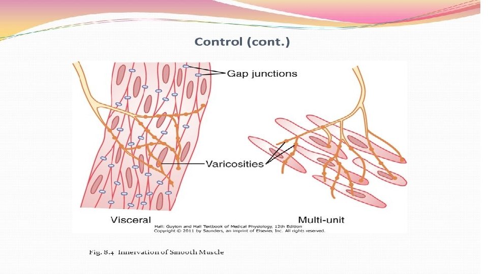 C. Differences 1. Longer contractile periods than skeletal 2. Can sustain a contraction longer = more tone 3. Can be stimulated by nervous impulses, hormones, p. H, gas levels, temperature. 4. More extensible