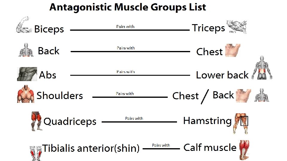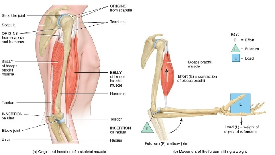 B. Actions 1. Antagonistic – muscles are paired in an antagonistic relationship. EX. Biceps pull the forearm up and triceps pull it back.