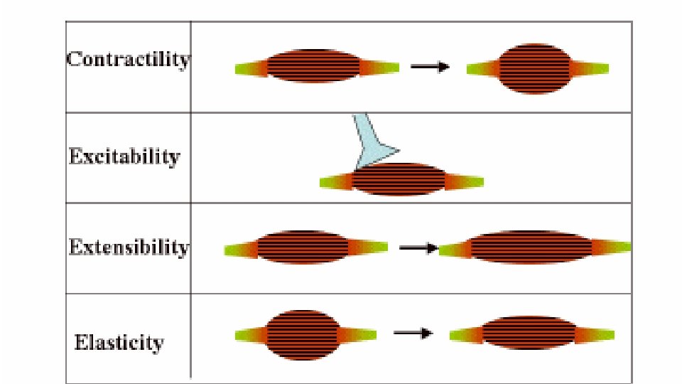 Characteristics Excitability - able to receive/respond to stimuli Contractibility - the ability to shorten https: //www. youtube. com/watch? v=p. WAvm. QZjd. Xk Extensibility - the ability to lengthen Elasticity - the ability to return to original size