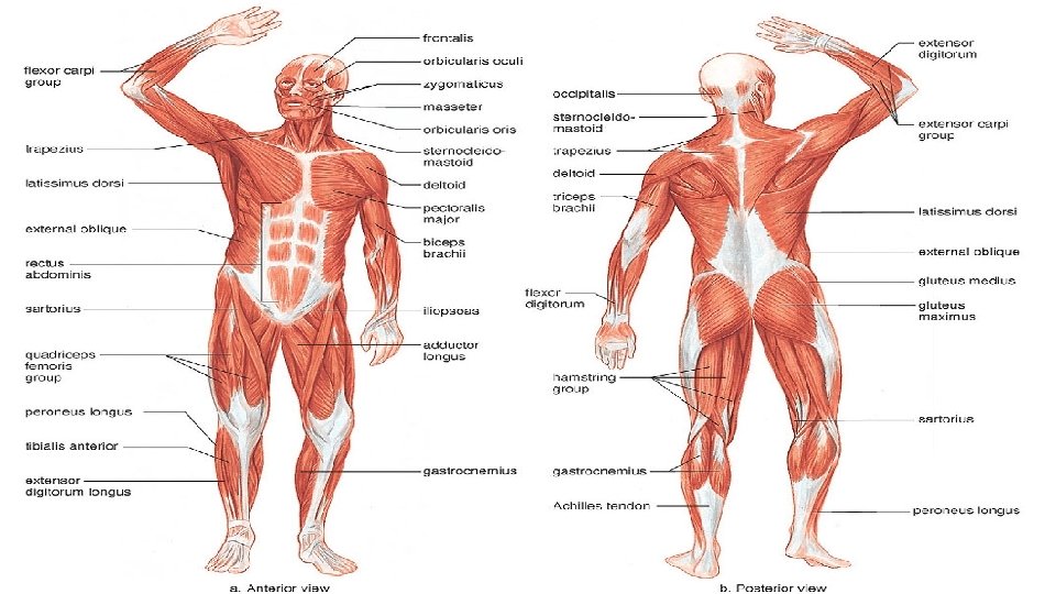 2. Types a. Agonist – the primary muscle causing the action – bicep flexing the elbow b. Antagonist – relaxed during the motion of the agonist, but contracts to return the moved part to its original position – tricep extending out the elbow.