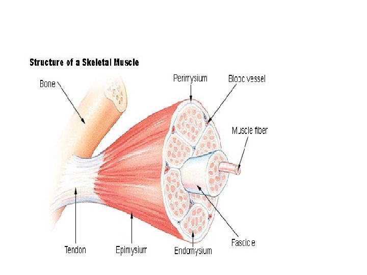 Structure of Skeletal Muscle: Connective Tissue Covering • Epimysium – Surrounds entire muscle • Perimysium – Surrounds bundles of muscle fibers • Fascicles • Endomysium – Surrounds individual muscle fibers
