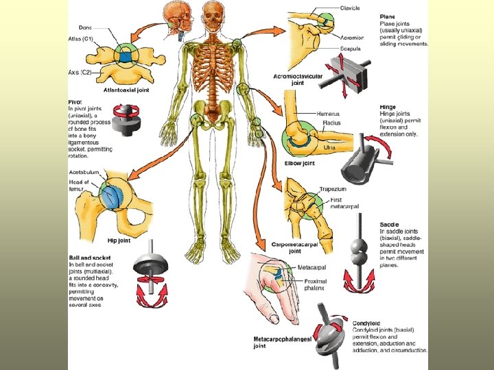 Joints Synovial joint Plane Hinge Pivot Condyloid Ellipsoid Saddle Ball and socket