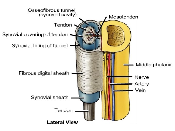 Synovial sheath §Tubular bursa that surrounds a tendon §tendon become suspended within bursa by a mesotendon