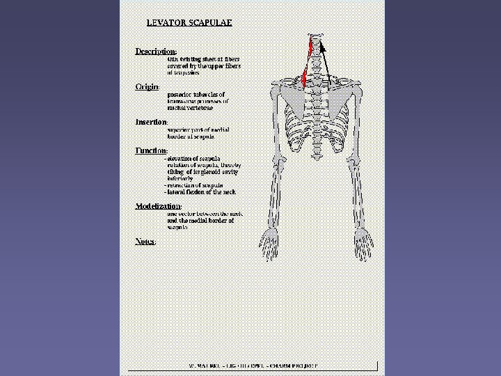 Levator Scapulae § Origin: Transverse processes of the first 4 cervical vertebrae. § Insertion: Superior angle and medial border of the scapula. § Actions: Elevation of the scapula