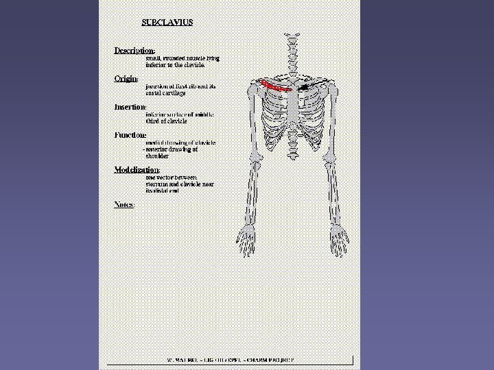 Subclavius § Origin: Superior aspect of first rib § Insertion: Inferior aspect at mid-clavicle § Action § Depression of the scapula § Stabilization of the scapula