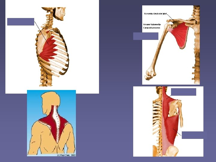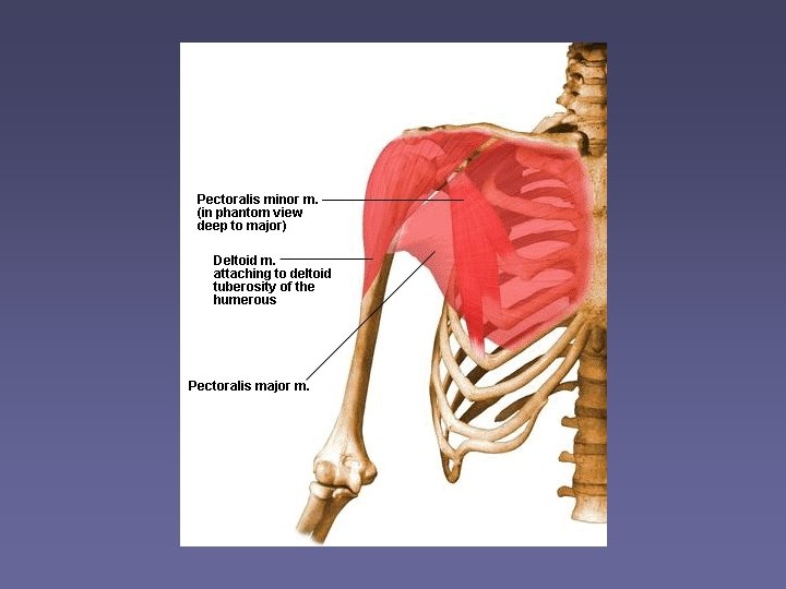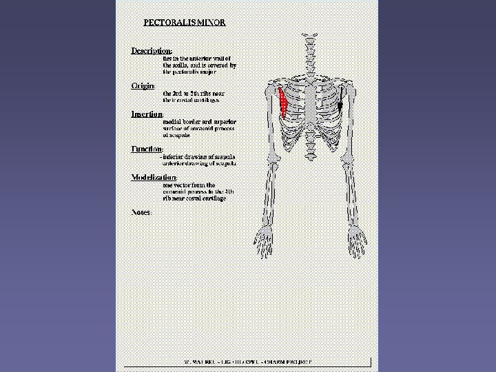 Pectoralis Minor § Origin: Anterior surface of 3, 4, and 5 ribs § Insertion: Coracoid process § Actions: § Abduction of the scapula § Downward rotation of the scapula § Depression of the scapula