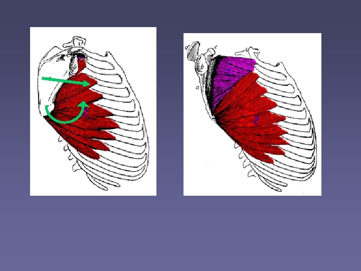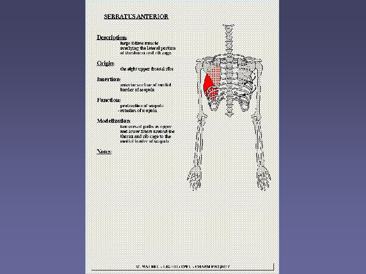 Serratus Anterior § Origin: Lateral surface of upper 8 ribs § Insertion: Anterior surface of medial border and inferior angle of scapula. § Actions: § Abduction of the scapula § Upward Rotation of the scapula