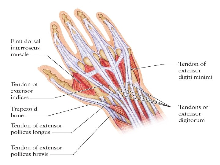 Extensor Digitorum • Action: – Extension of 2 nd, 3 rd, 4 th, 5 th phalanges – Extension of wrist – Weak extension of wrist • Innervation: – Radial nerve (C 6, 7, 8)
