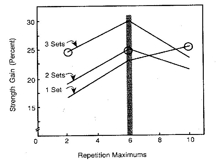 Sets and Reps (Poliquin, 1986) 100% = 1 -RM 95% = 2 -RM 90% = 3 -RM 88% = 4 -RM 85% = 5 -RM 83% = 6 -RM 80% = 7 -RM 78% = 8 -RM 76% = 9 -RM 75% = 10 -RM 72% 70% 69% 68% 66% 65% 64% 63% 62% 60% = 11 -RM = 12 -RM = 13 -RM = 14 -RM = 15 -RM = 16 -RM = 17 -RM = 18 -RM = 19 -RM = 20 -RM 10