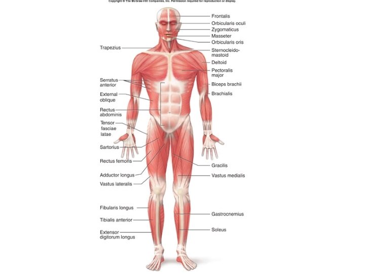 MUSCLES • Make up 40% body weight. • About 600 individual muscles are present attached to bones. • Present in cardia. • Present in viscera, tubes.