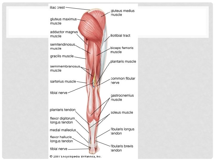 MUSCLES CAUSING MOVEMENT AT THE ANKLE AND FOOT • Tibialis anterior • Extensor digitorum longus • Fibularis muscles • Gastrocnemius • Soleus