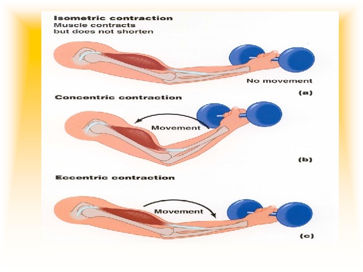 Muscle contraction Three types • Isometric • Concentric • Eccentric