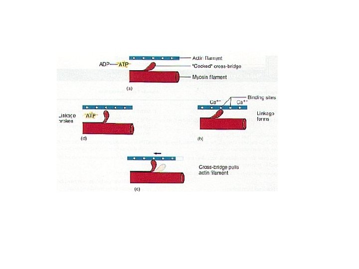 MECHANISM OF MUSCLE CONTRACTIONS 1. The Sarcomere is the functional unit of Muscle contractions. 2. When Muscle Cells Contract, the light and dark bands contained in Muscle Cells get closer together. 3. This happens because when a Muscle Contracts, Myosin Filaments and Actin filaments interact to shorten the length of a Sarcomere. 4. When Myosin Filaments and Actin Filaments come near each other, many knob (heads) like projections in each Myosin Filament form CROSS-BRIDGES with an Actin Filament. 5. When the Muscle is Stimulated to Contract, the Cross-bridges MOVE, PULLING the Two Filaments past each other.