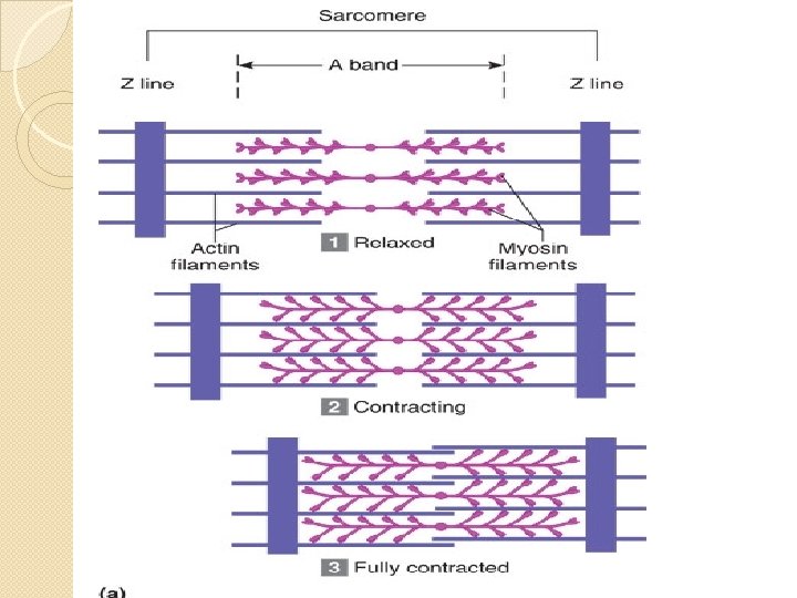 How skeletal muscles move or “slide” �Thin Actin slide past the thick Myosin so that the actin and myosin filaments overlap �In the relaxed state, thin and thick filaments overlap only slightly �In order for this process to start sodium must ender the cell (active transport) and the nervous tissue sends a signal to begin contraction