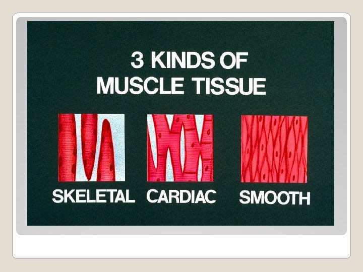 � Lines organs � Makes � In up walls of blood vessels the digestive system � Smooth – has not striations � Contracts � Controlled when stimulated by the autonomic nervous system Visceral Muscle