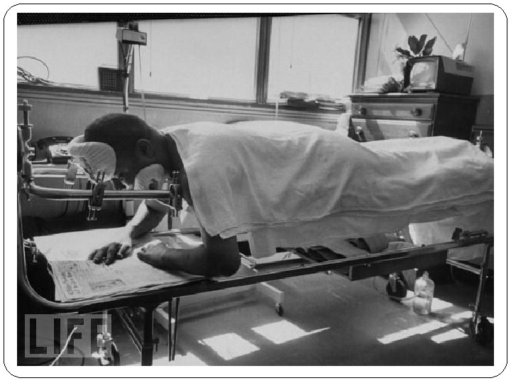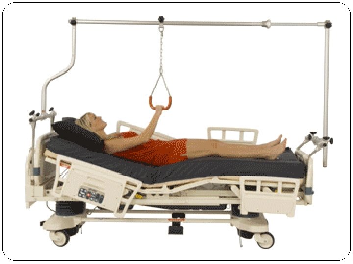 �Traction � Traction uses a pulling force to promote and maintain alignment to the injured area. In straight or running traction, the countertraction is provided by the client’s body. In balance suspension traction, the countertraction is produced by devices such as slings or splints. � Goals of traction include: � Realignment of bone fragments. � Decreasing muscle spasms and pain. � Correcting or preventing further deformities � Types of Traction � Manual � Skin � Skeletal � Halo Traction