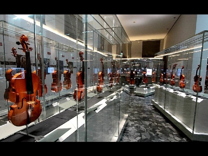 LAS COLECCIONES EN EL MUSEO DEL VIOLÍN SE ORGANIZAN EN 10 SALAS SALA 1: LOS ORÍGENES DEL VIOLÍN SALA 2: EL TALLER DEL LUTHIER SALA 3: LA DIFUSIÓN DEL VIOLÍN SALA 4: FABRICACIÓN CLÁSICA DE VIOLINES CREMONESE SALA 5: EL COFRE DEL TESORO: esta sala alberga los instrumentos más importantes donados al Ayuntamiento de Cremona, que incluye instrumentos elaborados por Antonio Stradivari y por varios miembros de las familias Amati y Guarneri. SALA 6: HERRAMIENTAS ESTRADIVARIAS SALA 7: EL CREPÚSCULO Y EL RENACIMIENTO DE LA FABRICACIÓN DE VIOLINES SALA 8: CONCURSOS TRIENALES DE FABRICACIÓN DE VIOLÍN SALA 9: AMIGOS DE STRADIVARI SALA 10: EL VIOLÍN EN EL CINE