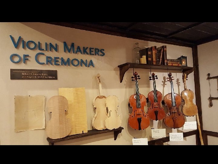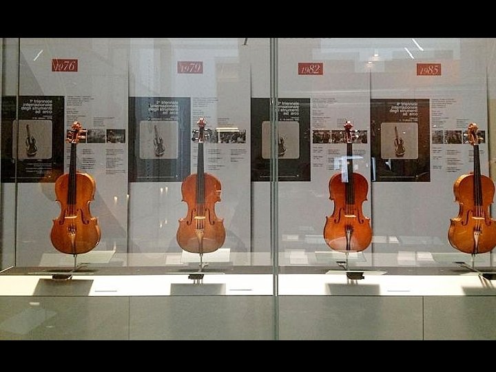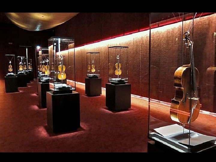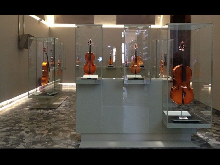 SALA 5 EL COFRE DEL TESORO Esta sala alberga los instrumentos más importantes donados al Ayuntamiento de Cremona, que incluye instrumentos elaborados por Antonio Stradivari y por varios miembros de las familias Amati y Guarneri.