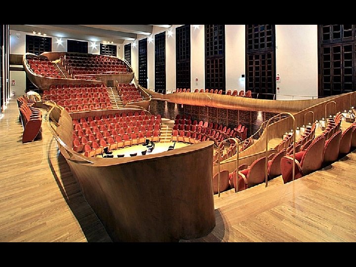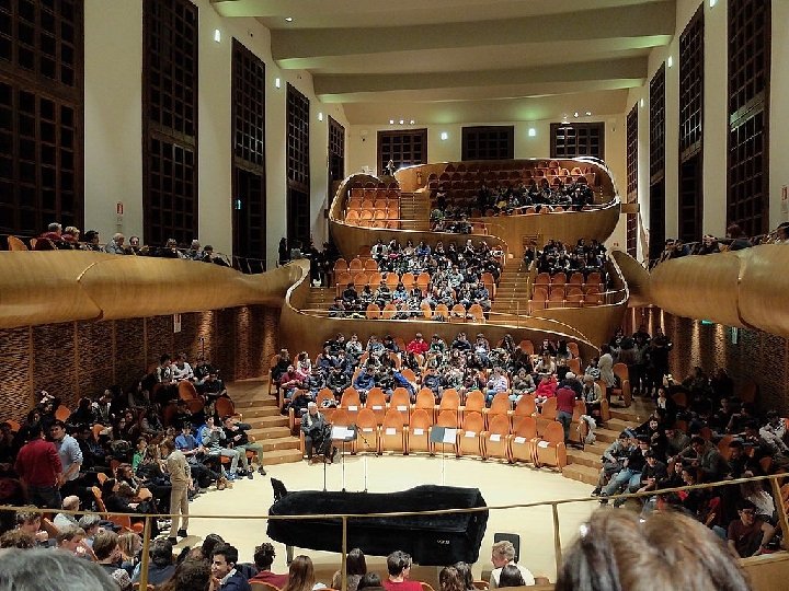 EL AUDITORIO GIOVANNI ARVEDI En la parte posterior del museo, en lo que originalmente era el salón de actos del Palacio del Arte, un auditorio de 464 asientos con el nombre del empresario, Giovanni Arvedi, fue diseñado y construido por los arquitectos Giorgio Palù, Michele Bianchi y el ingeniero acústico, Yasuhisa Toyota. Los solistas y las orquestas de cámara actúan en un pequeño escenario elíptico con un área de 85 m 2, ubicado en el centro de la sala.