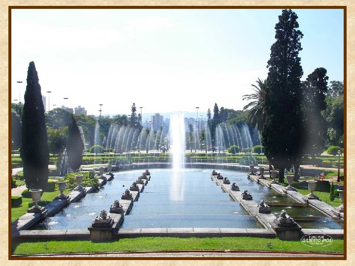 O belo jardim, enfeitado por fontes e espelhos d’água, à maneira dos jardins de Versailles, foi projetado por Arsênio Putemans, e inaugurado em 1920