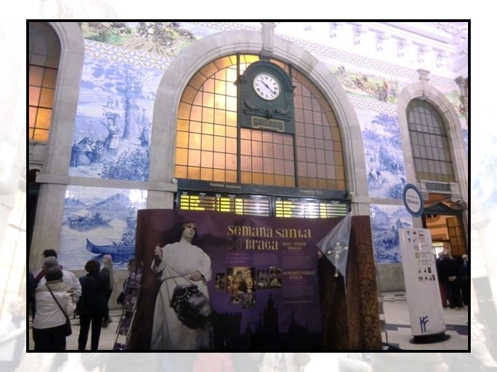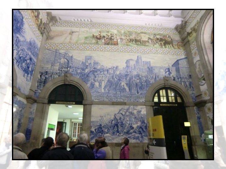 Autrefois, se trouvait à cet emplacement le célèbre couvent S. Bento da Avé-Maria. C’est en souvenir de ce couvent que l’actuelle gare de chemin de fer tire son nom. En 1900, le roi Charles Ier posait la première pierre pour la réalisation de l’actuel édifice, œuvre de l’architecte Marques da Silva. Des cimaises et des archivoltes, en granit rythment les parois recouvertes, ainsi que la corniche d’azulejos. C’est l’ensemble le plus important existant au Portugal de ce type de revêtement en faïence émaillée d’origine arabe il est dû au maître Jorge Colaço. Sur les parois latérales de grands panneaux représentent des scènes historiques. Dans les espaces vides, plus réduits mais d’une aussi grande beauté, on peut remarquer un moulin à eau sur le Douro et bien d’autres.