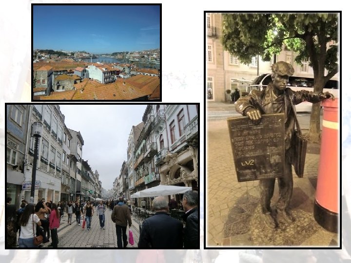 La Torre Dos Clérigos que l’on voit sur la diapo précédente est le symbole de la ville. L’église baroque qui remonte au XVIIIe siècle fut construite par Niccolo Nasoni. C’est là que l’architecte italien a été enseveli selon sa propre volonté. Les premiers travaux commencèrent en 1732 et prirent fin en 1763. Niccolo Nasoni construisit cette tour de 76 m de haut présentant plusieurs ordres. Sa forme rappelle celle d’un tronc portant dans sa partie terminale une branche soutenant une fleur. La terrasse, chargée de fleurs, permet une vue panoramique absolument unique sur la ville, mais il faut avoir le courage de gravir ses nombreuses marches. Le quartier de la Ribeira et son marché sont un monde à part dans le monde à part qu’est la ville de Porto. Sur cette petite place , José Rodrigues construisit le Cube avec ses sept colombes. L’emplacement de cette œuvre n’est pas des plus heureux, elle mériterait un espace plus ouvert étant le symbole de la liberté du peuple et sa détermination à l’obtenir.