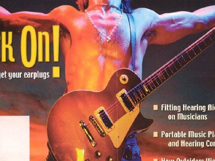 Rockers less prone to hearing loss!!! Hart et al. (1987)…. Only 30% of rockers had hearing loss. vs. Royster et al. (1991) …. 52% for classical music. 1. Rockers only are subjected to loud music for several hours per week. 2. Enjoyment of music 3. Stapedial reflex (sings along? )