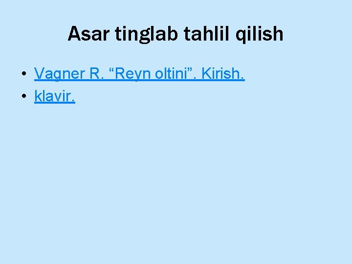 Asar tinglab tahlil qilish • Vagner R. “Reyn oltini”. Kirish. • klavir.