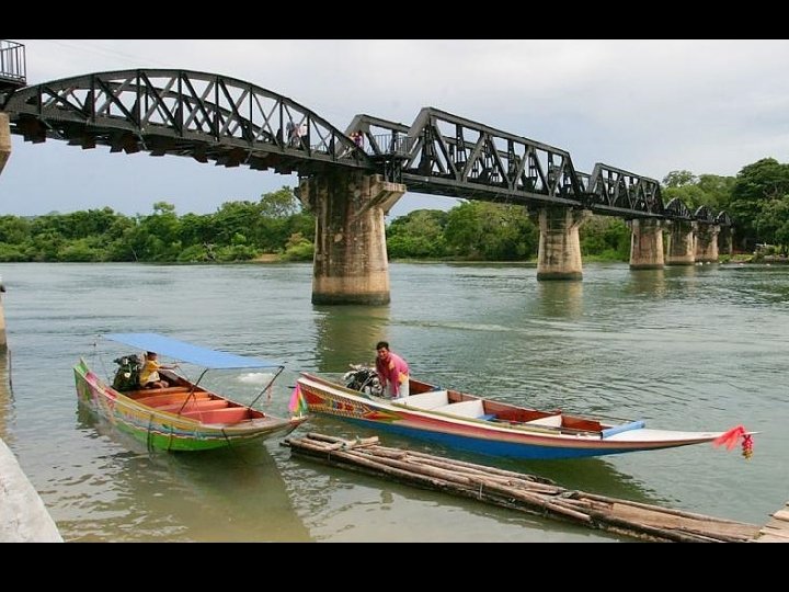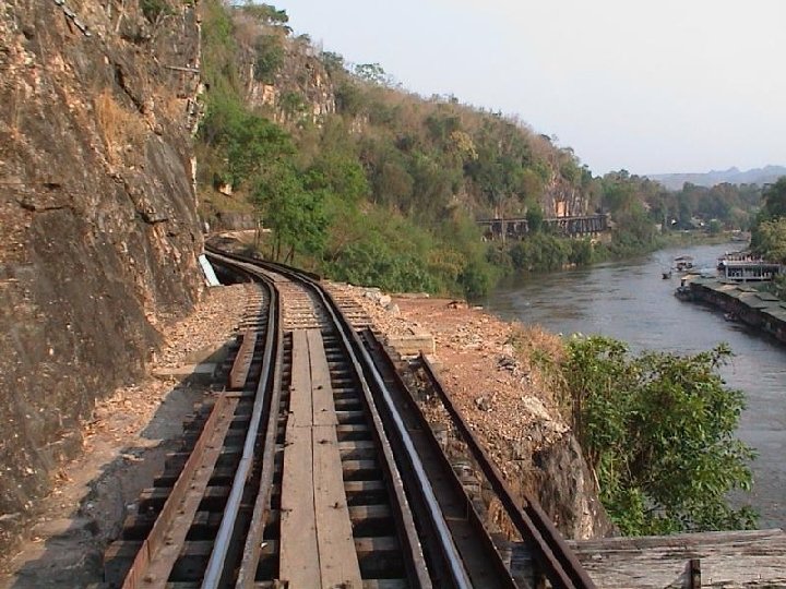 Kwai (Khwa Noi) - une rivière dans l'ouest de la Thaïlande près de la frontière avec la Birmanie, se jette dans le golfe de la Thaïlande, dans ces années de la Seconde Guerre mondiale sur ce fleuve ont été construits deux ponts. Lors de sa construction sont morts de nombreux prisonniers de guerre alliés. De ces événements de la guerre et du fleuve a été tiré le célèbre film « Le Pont de la rivière Kwaï » , de David Lean basé sur le roman de Pierre Boulle avec le même titre. Lorsque les Japonais ont commencé la Seconde Guerre mondiale, ils ont immédiatement pensé à la façon d'éviter le blocage de la baie du Bengale par les Alliés. Et cherché à faire une autre liaison entre les régions, allant de Singapour à la frontière nord de la Birmanie. Ils ont pensé que la meilleure solution serait la construction du chemin de fer Tajlandzko birmanes reliant Nong stations Pladuk en Thaïlande et en Birmanie le tronçon Thanbuyazat de 415 km. Puis de tracer la voie à travers la vallée de la rivière Kwai, malgré le fait que la région était presque totalement inaccessible à l'homme. Les travaux sur les deux extrémités du chemin de fer ont commencé en Juin 1942. Il est difficile de croire que les esclaves étaient forcés d’y travailler, jusqu'à 60 mille prisonniers de guerre alliés, qui plus tard sont passés au nombre de 200 000 hommes. (Asiatiques, et travailleurs forcés). Avec l'aide d'outils primitifs ils ont traversé les trois millions de mètres cubes de roche et construit près de quinze kilomètres de ponts. La ligne a été achevée en quinze mois, elle mérite pleinement d'être appelé "Death Railway". ie de 16 000. Prisonniers et 100 000. Travailleurs asiatiques. Suite