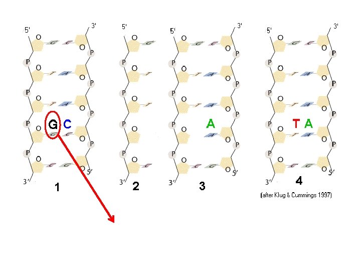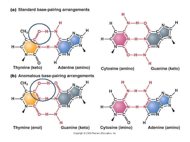 A. Gene Mutation 1. Mutations are Classified in Different Ways: 2. The Rates of Spontaneous Mutations: 3. How Spontaneous Mutations Occur: a. Substitutions: - truly random error in replication - tautomeric shift: All bases can exist in different forms. In the atypical form, they bind to different bases.
