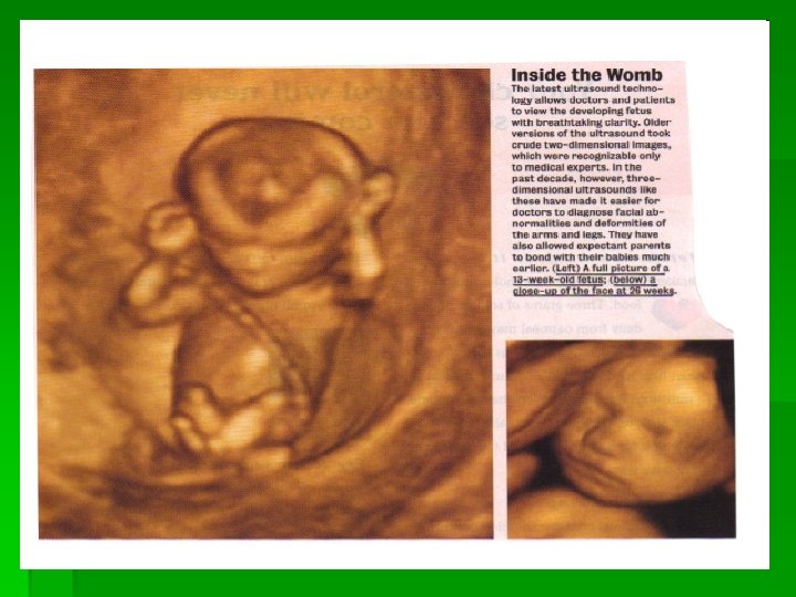Detecting Genetic Disorders § Karyotyping § Amniocentesis § Chorionic villus sampling § Ultrasound