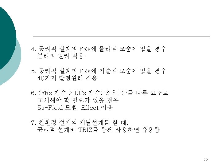 부록 (Axiomatic Design for TRIZ) 2. Some Administrative contradictions could be solved by Axiomatic design - some complexity of the system can be solved by design matrix. 56