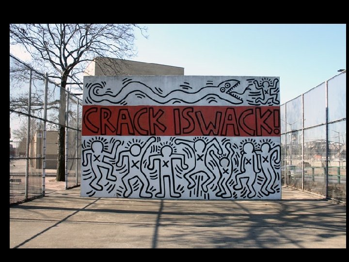 New York Graffiti • Az utcai falfirkák művészetére felfigyelő műkereskedelem az újfestőiség európai művészetével párhuzamosan bevitte a kiállítótermekbe (Keith Haring)