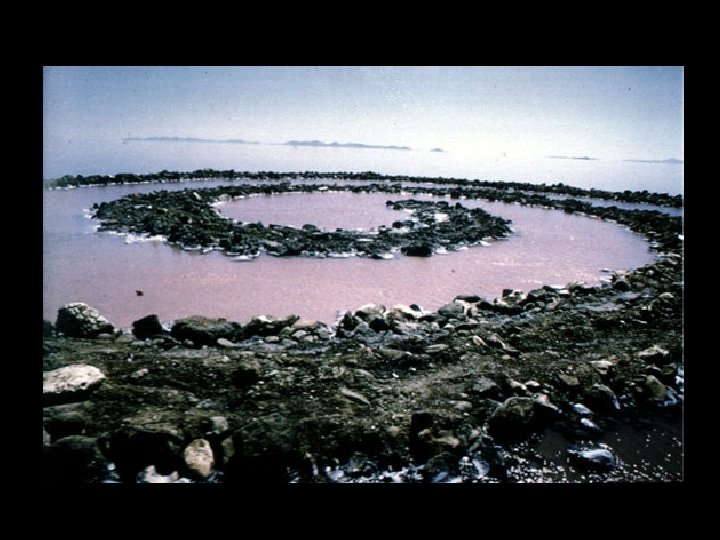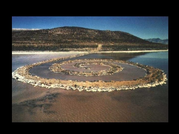 6. Land art, earth art • A „tájművészet” és „föld művészet” szintén szembe száll a művészet elüzletiesedésével, alkotásai kiállíthatatlan, megnézhetetlen művek, csak tervekről, fotókról ismerhetőek meg • A természetben, a természettel dolgoznak alkotóik (Heizer)