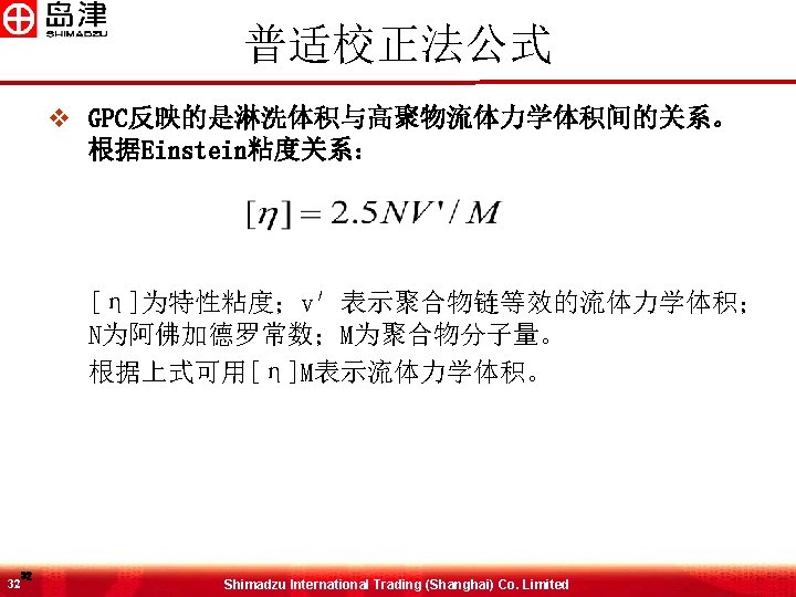 窄分布标样校正法-分子量转换 v QF因子比(RQF) v. QF定义:单位链长分子量 v仅适用于单链聚合物 25 25 Shimadzu International Trading (Shanghai) Co. Limited
