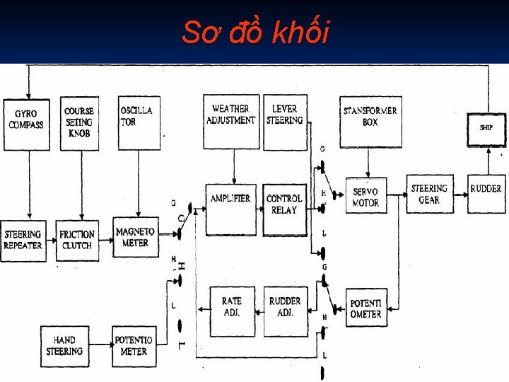 Tín hiệu này sẽ đưa tới bộ khuếch đại. Bộ khuếch đại sau khi khuếch đại tín hiệu lên sẽ đưa tín hiệu đến rơle. Rơle điều khiển hoạt động của động cơ (Sevor motor) trong cơ cấu chấp hành và máy lái bẻ bánh lái đi một góc nào đó đủ đưa tàu về hướng đi cũ đồng thời cơ cấu phản hồi được nối cơ với cơ cấu điều khiển bẻ bánh lái (POTENT IOMETER) sản sinh ra một tín hiệu phản hồi. Tín hiệu này có tính chất ngược pha với tín hiệu điều khiển. Tín hiệu này được đưa qua bộ điều chỉnh góc bẻ lái (RUDDER ADJ) và bộ điều chỉnh tốc độ bẻ bánh lái (RATE ADJ). sau đó được đưa tới bộ khuếch đại (AMPLIFIER). Bánh lái ngừng hoạt động là khi tín hiệu phản hồi triệt tiêu tín hiệu sản sinh từ góc lệch hướng.
